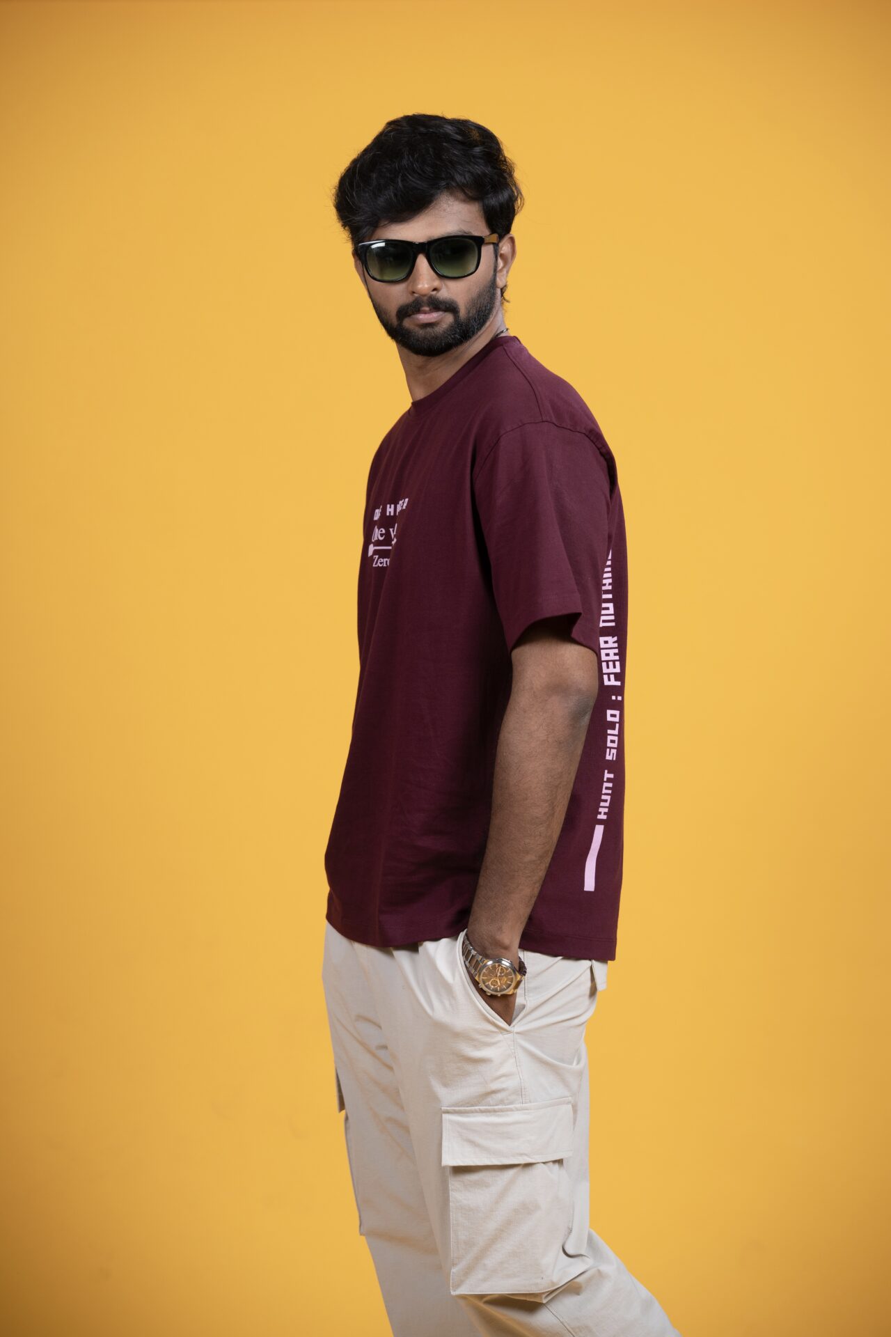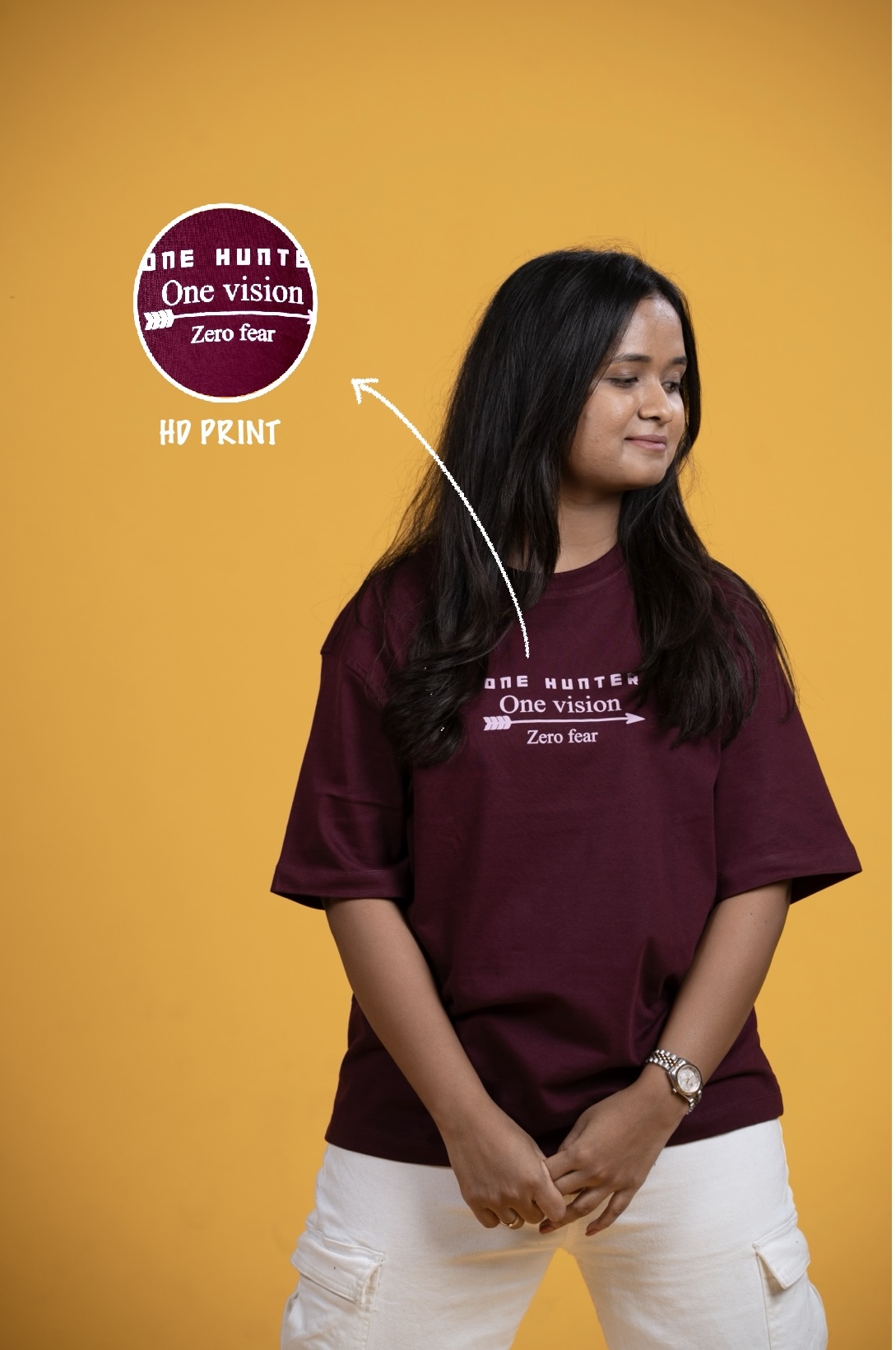 Easygoing days call for effortless style. This wine T-shirt is designed for comfort, attitude, and everyday wear. Featuring the statement “One Hunter. One Vision. Zero Fear”, it reflects focus, confidence, and an unapologetic mindset. Crafted in a rich, deep hue with a relaxed silhouette, this tee blends comfort with quiet power—perfect for everyday wear with meaning.